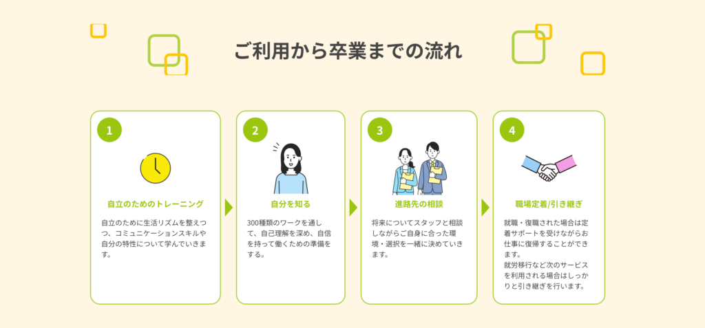 👉 「土台(生活・人間関係・自己理解)から整え、最終的に就職までつなげる場所」